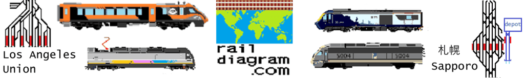 This site shows you the railway track diagram maps all over the world. If you don't understand the language, you can quickly find out where and what kind of trains are running on them. Please enjoy my contents. このサイトでは世界の鉄道線路配線略図等を紹介しています。知らない路線でもどこをどんな列車が走っているか、仮に書かれた言葉が分からなくても理解できるよう工夫しています。どうぞお楽しみください。 Le muestro diagrama de vias Ferrovarias or diagrama Ferrovario en todo el mundo. Si no entiendes el idioma, puedes averiguar rápidamente dónde y qué tipo de trenes circulan por ellos. Disfruta de mi contenido. 此頁面向您展示世界各地的鐵路圖。如果您不懂該語言,您可以快速找到在哪裡運行以及運行何種類型的火車。請欣賞我的內容。